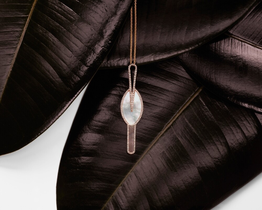 Calao Collier Calao en or rose, diamants et nacre blanche et grise