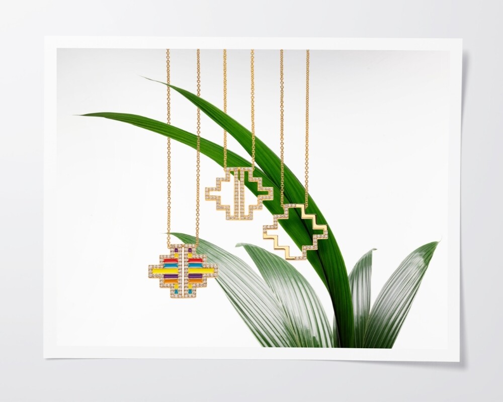 La collection Kita est une histoire de patience et de beauté qu’AC by AC a voulu raconter. Lignes géométriques, couleurs éclatantes et lumineuses, l’art des tisserands est quant à lui magnifié de pierres précieuses et d’émail.