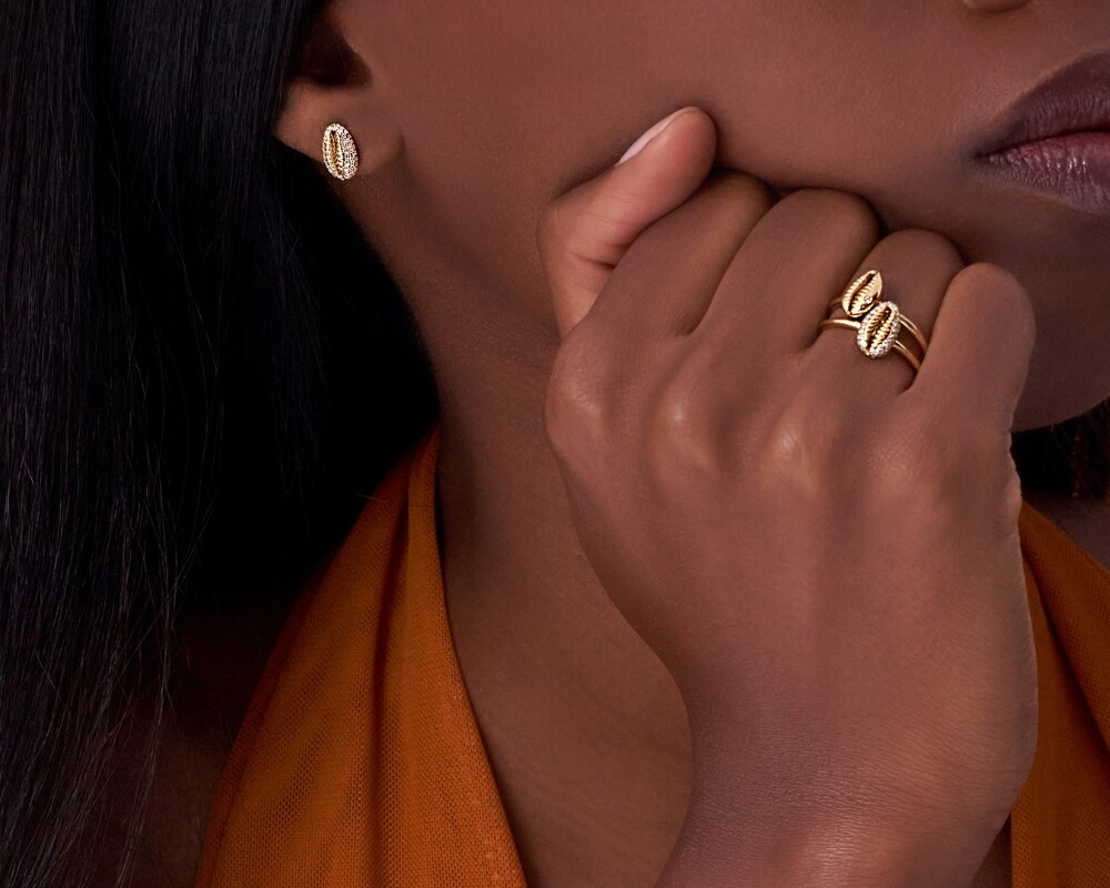 Cauris Puces Baby Cauris en or jaune pavées diamants