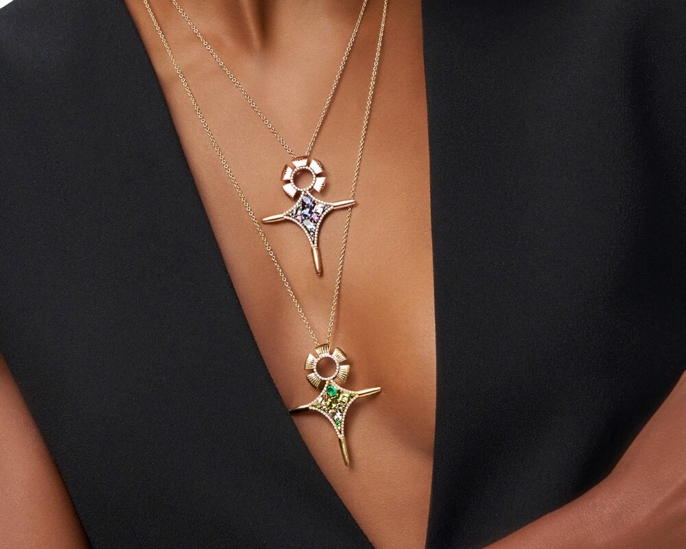 Ashanti Collier ASHANTI XXL en or jaune, diamants et tsavorites