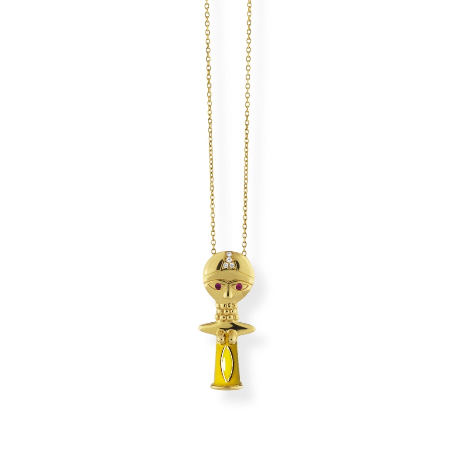 Les poupées Ashanti, symboles connus de l'art populaire africain, deviennent de sensuels pendentifs habillés de diamants et de pierres précieuses.