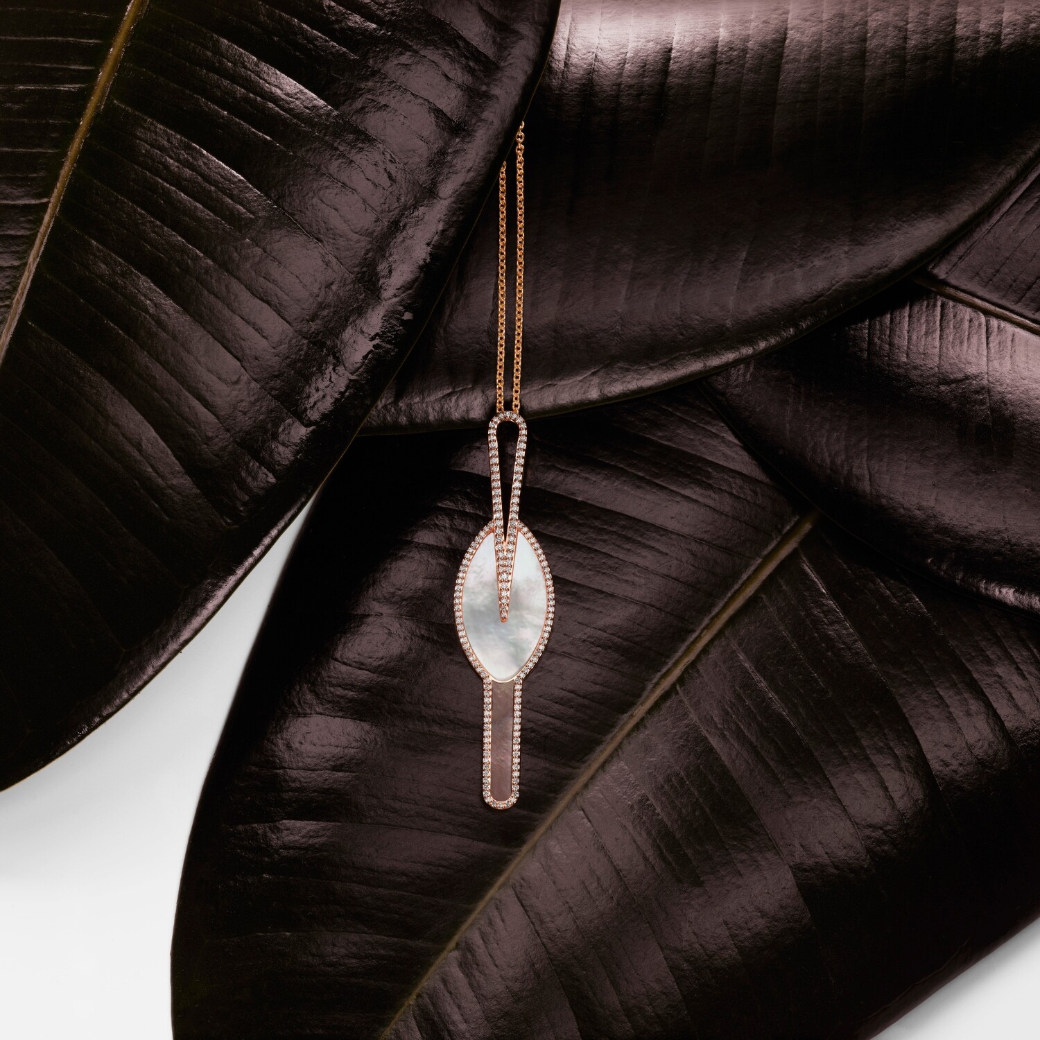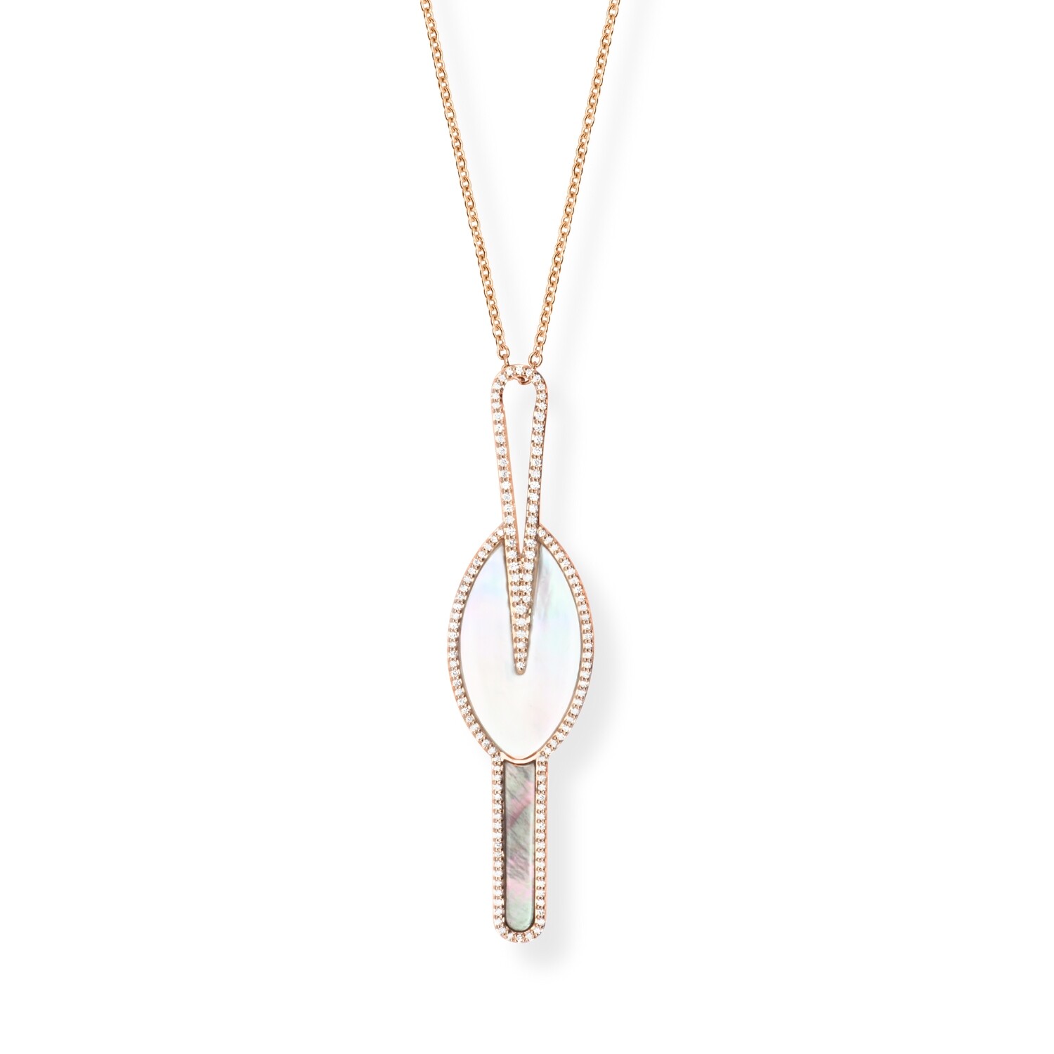 Collier Calao en or jaune, diamants et nacre blanche et grise