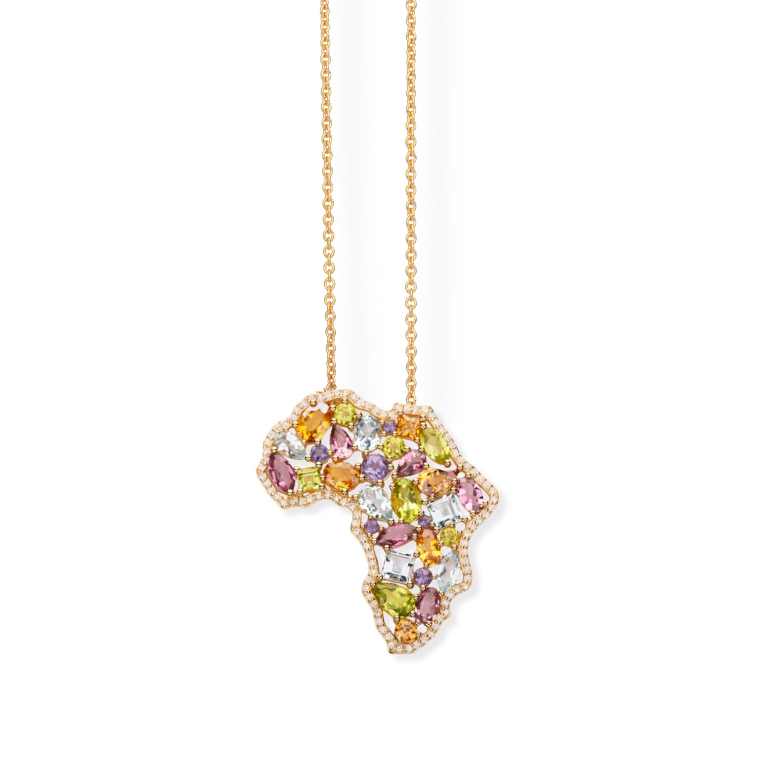 Origine Collier Origine en or jaune, diamants, topazes bleues, cordiérites, saphirs oranges, péridots et tourmalines roses